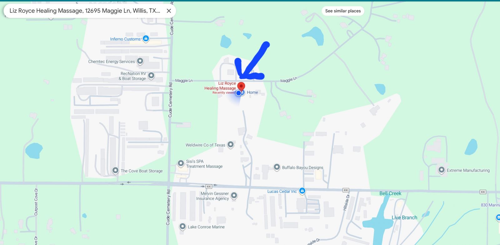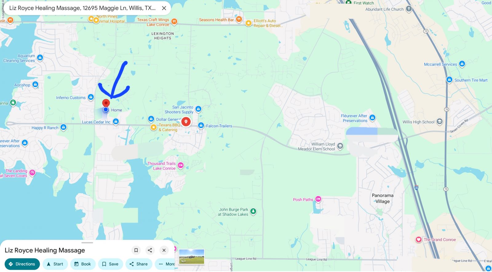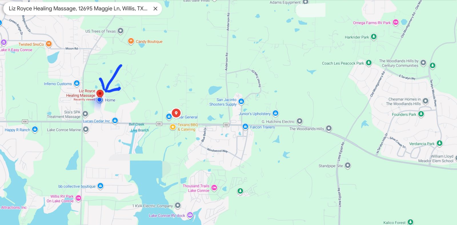 About 4 miles from I-45 off FM 830 (Seven Coves).